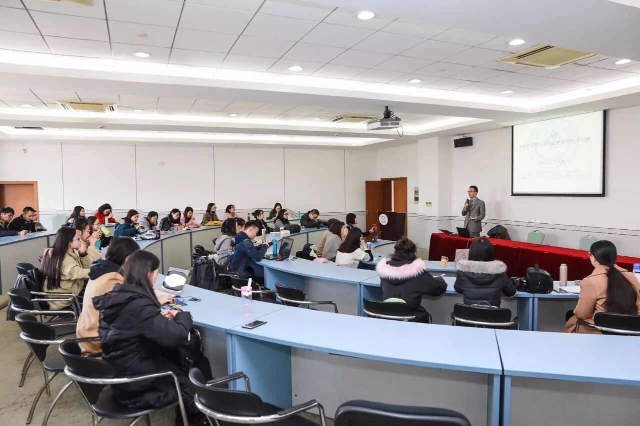 图文信息大楼530的半圆桌会议室里气氛热烈,卢先堃正在为法学院的数十位研究生和本科生作“当前中国参与国际经贸谈判热点问题”的讲座。开场时,卢先堃谦虚地说道:“说是讲座,其实我也没有准备PPT,大多是近期的所思所想,一家之言,供大家参考。”他全程手持话筒站立着侃侃而谈,身姿挺拔,很有儒雅学者的风度。